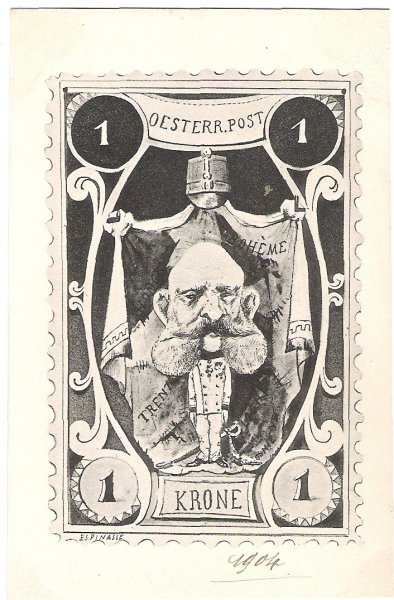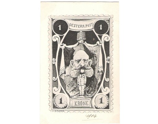 Caricature of Franz Joseph was illustrated on one-crown post stamp
