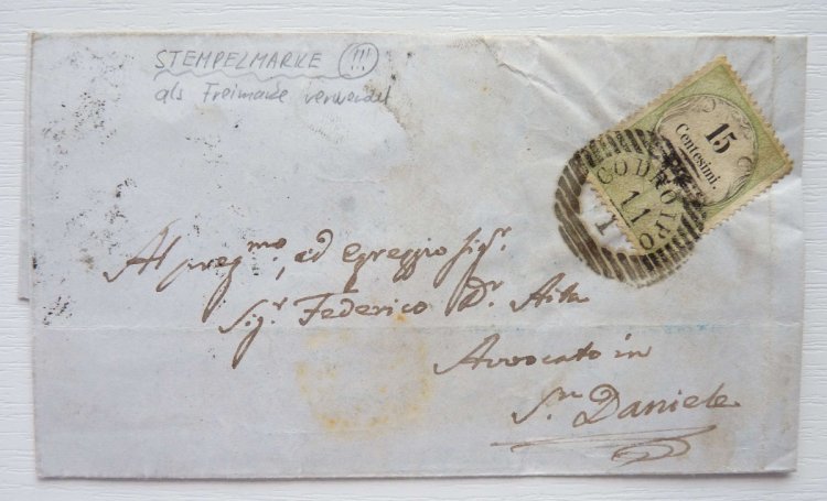 Letter stamp centesimi 1915 - GODROIPO stamp, stamp arrived back Daniete