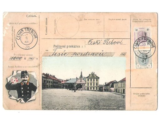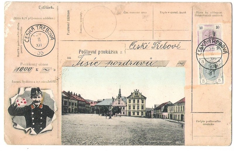 Ceska Trebova - post man and stamps of Franz Joseph