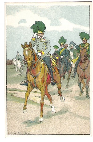 Cheerful color photo of Franz Joseph and soldiers