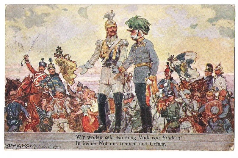 Cheering soldiers , Franz Joseph and Wilhelm , variant of description