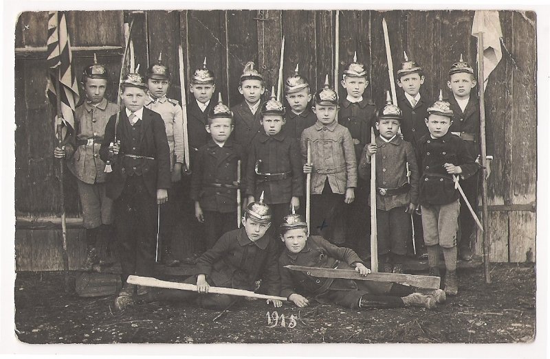 Children playing at soldiers , 1915