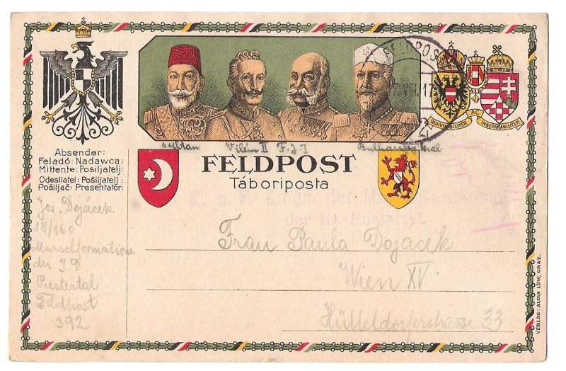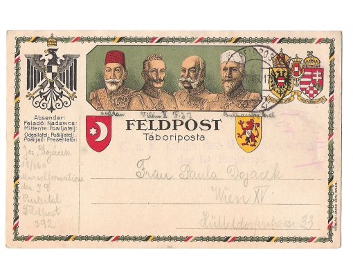 Color variant of field postcard , with crests of monarchs
