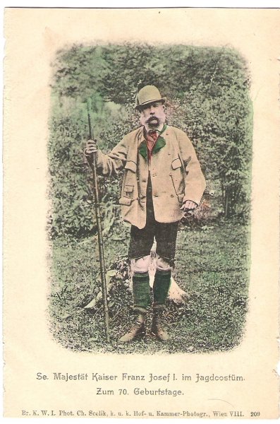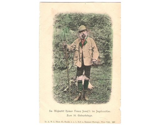 Colored postcard with Franz Joseph in hunting suit (2) © 2012 franz-josef.cz; realized KETNET Ltd. (website, e-shop, web presentations), hosted and operated by CMS Modeline MODElina, connected to the network TaNET