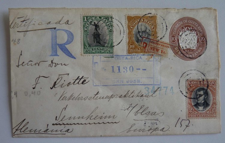 Costa Rica - R stationery to Germany / via U.S. ... interesting