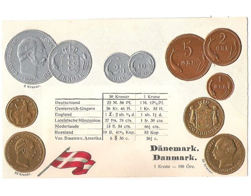 Denmark - coin on postcard
