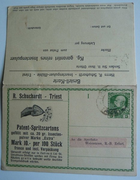 DoubleAustrian stationery 5 Heller - Franz Josef overprints advertising from both sides - the integrity of the attractive