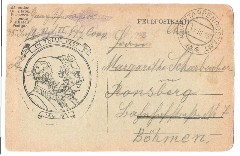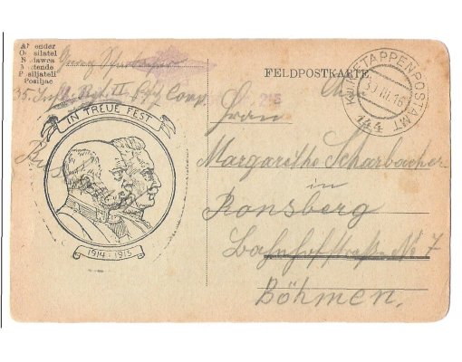 Double portrait of Franz Joseph and Wilhelm , 1914 - 1915 , field postcard