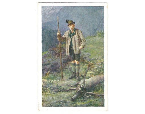 Drawn postcard for 50th birthday , Franz Joseph is aiming at deer