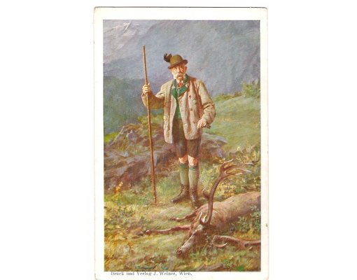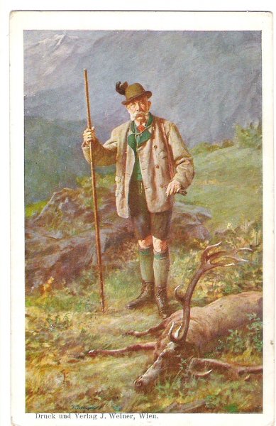 Drawn postcard , Franz Joseph and trophy deer (2)