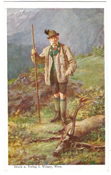 Colored postcard with Franz Joseph in hunting suit © 2012 franz-josef.cz; realized KETNET Ltd. (website, e-shop, web presentations), hosted and operated by CMS Modeline MODElina, connected to the network TaNET