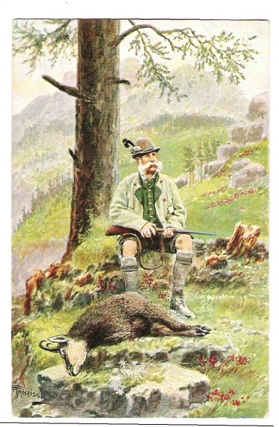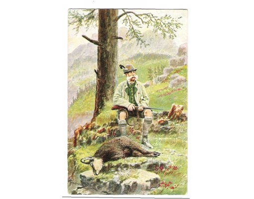Drawn postcard for 50th birthday , Franz Joseph is aiming at deer © 2012 franz-josef.cz; realized KETNET Ltd. (website, e-shop, web presentations), hosted and operated by CMS Modeline MODElina, connected to the network TaNET