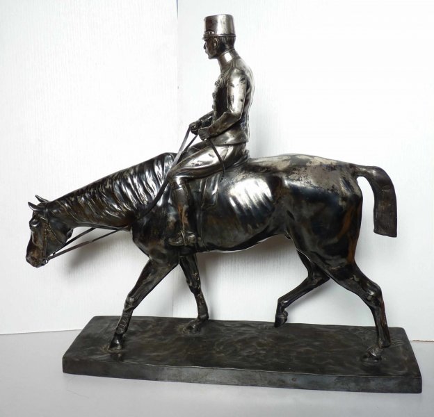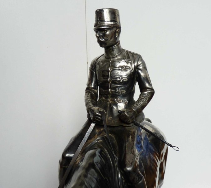 Emperor Charles in Hungarian uniform on horseback ... one of the best items in the museum / strong alpaca silver - 50 x 45 cm