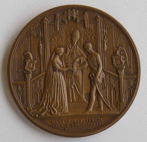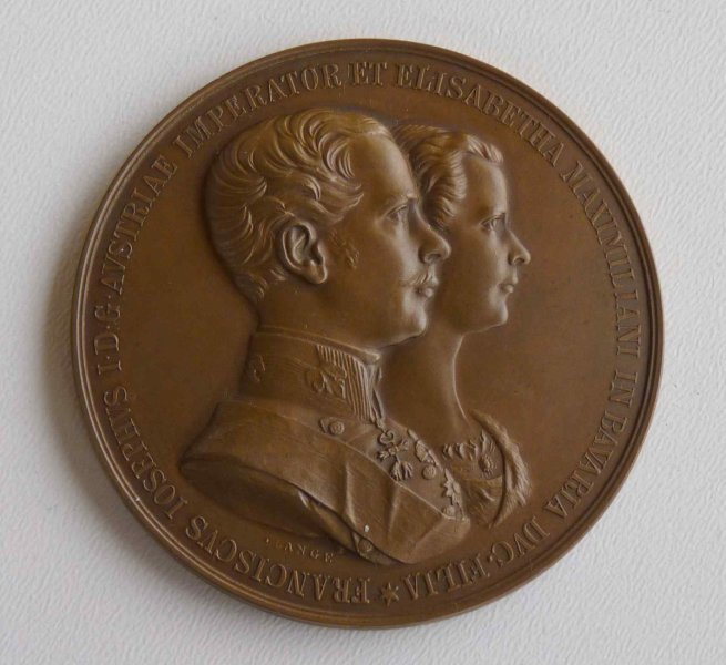 Bronze medal with picture of young emperor Franz Joseph and young Elisabeth