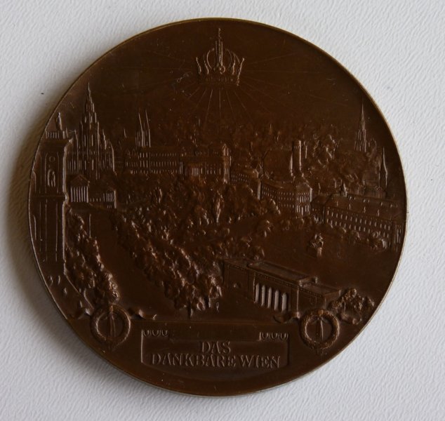 Emperor Franz Joseph on the medal , paiyig a tribute - Vienna