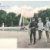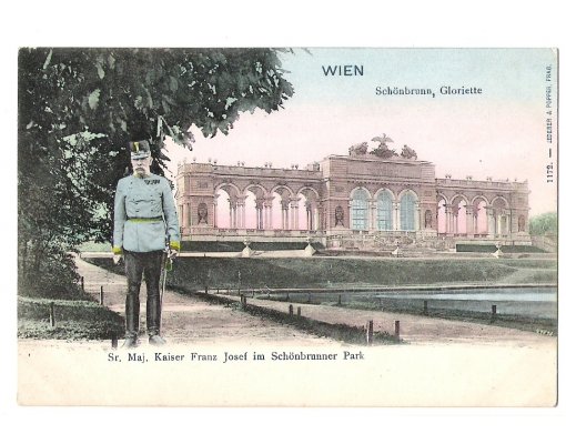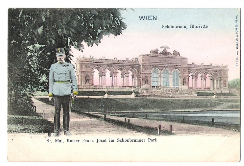 Emperor Franz Joseph on walk and background Schönbrunn-Gloriette, Vienna