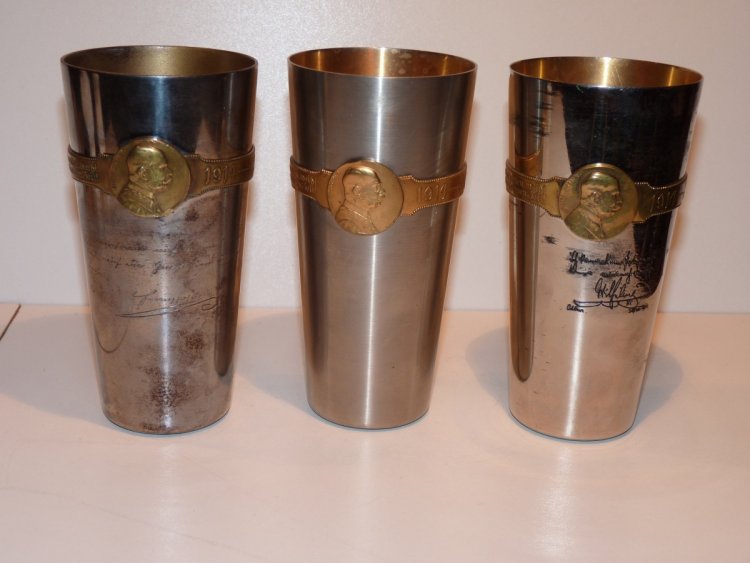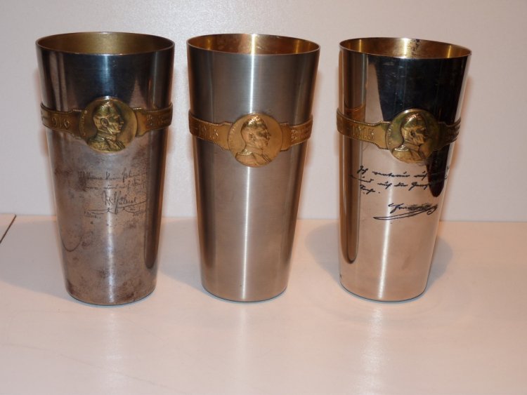 Set of three tinny cups with gold portraits of emperor Wilhelm and Franz Josef