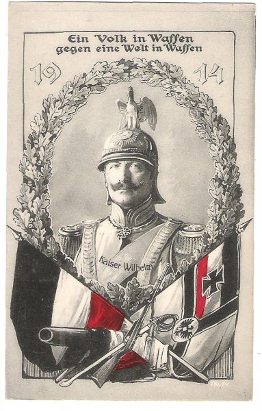 Emperor Wilhelm with military helmet , beginning of war in 1914