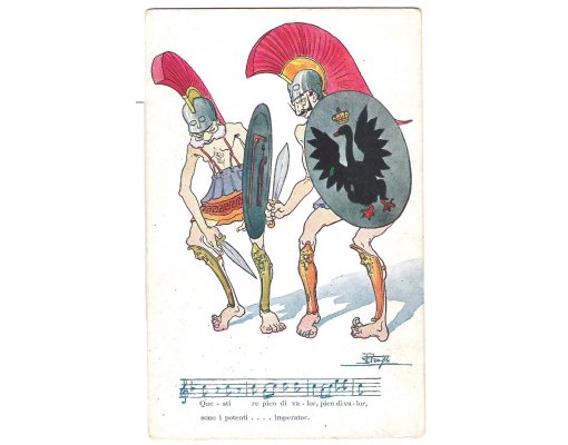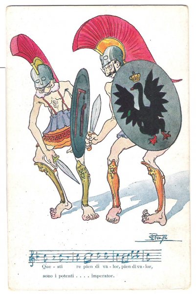 Emperors Franz Joseph and Wilhelm like roman gladiators