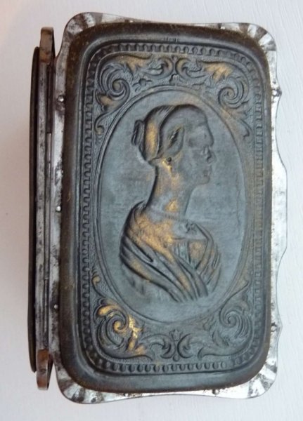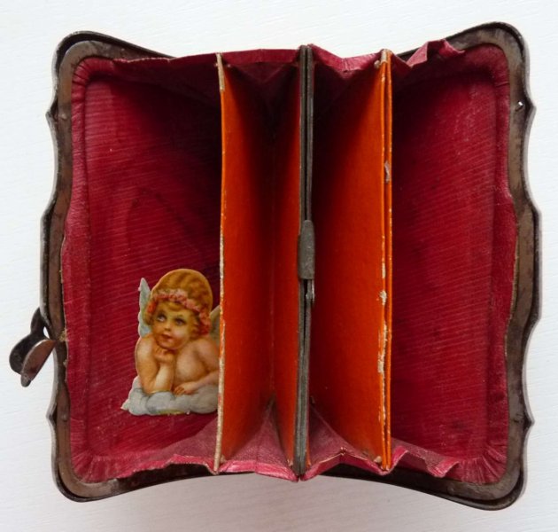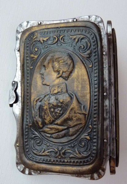 Wallet - portrait of young Franz Joseph and empress Sissi (Elisabeth), metal + leather, extraordinary exhibit