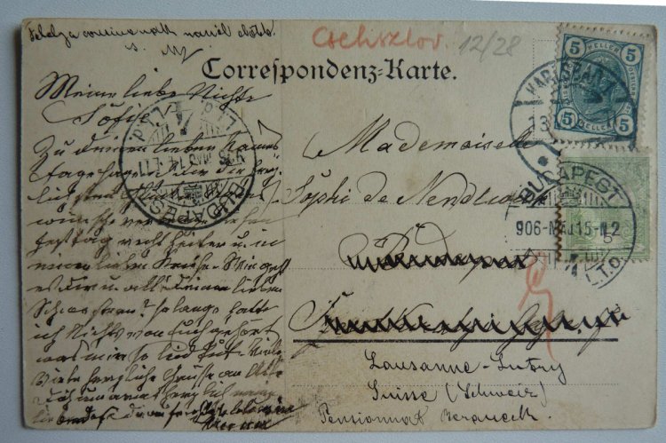 Exceptional integrity - look ... Karlsbad .. franked with Austrian gets 5 Franz Joseph Heller .... addresse not found and sent to the new address with the new Hungarian franking five Filler - RR