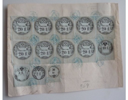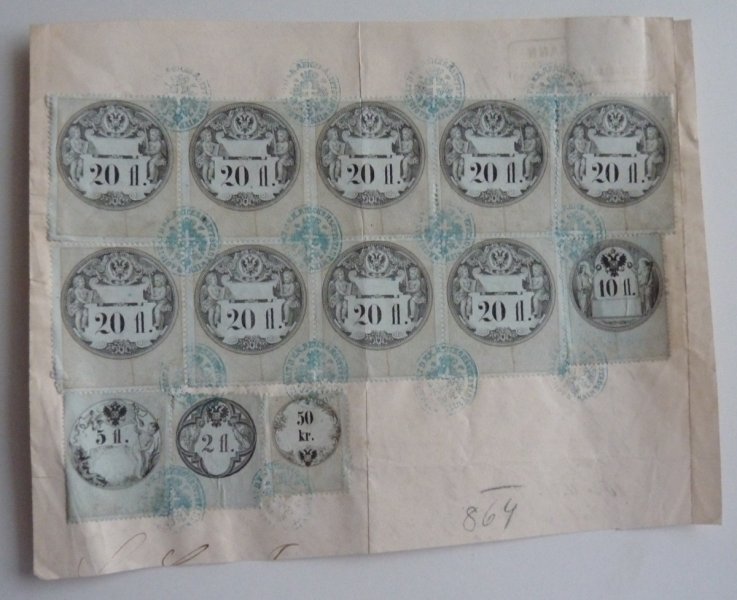 Fee stamp deed: 9times 20 guilders,one time 10 guilders, one time 5 guidens, one time 2 guildens and one time 50 kreutzer