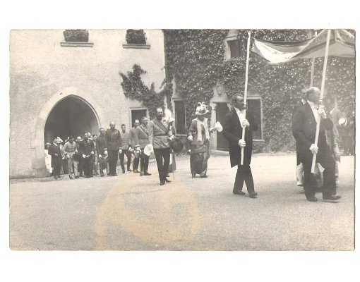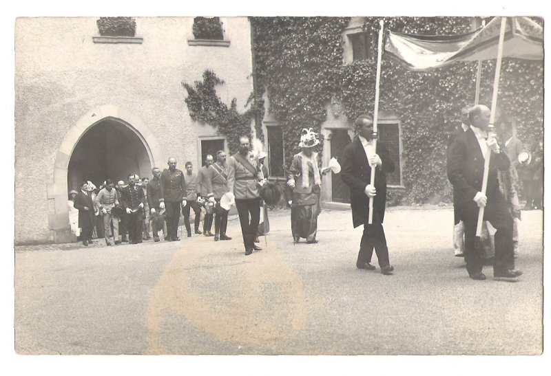 Festive parade : Franz Ferdinand and Sophie behind flag - bearers