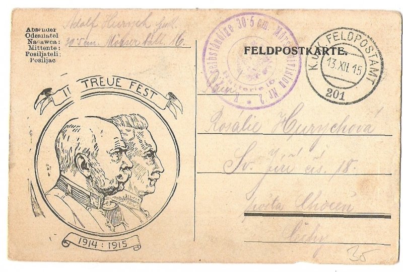 Double portrait of Franz Joseph and Wilhelm , 1914 - 1915 , field postcard , 3rd variant
