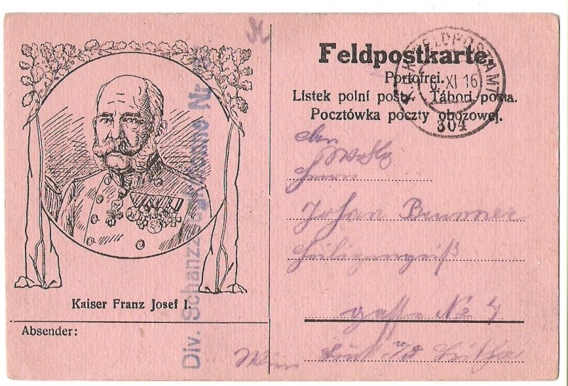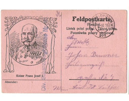 Field postcard , Franz Joseph in a decorative frame , description in Polish , Czech, Hungarian and German languages (3)