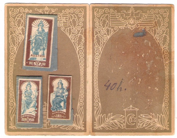 Folder with portraits of emperors - sewing tools ( few needles and shoe to tread the needle )