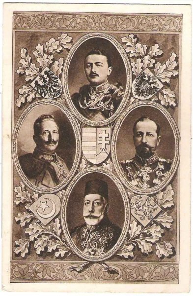 Four portraits - emperor Karl, Wilhelm II., Mohamed V. and king of Bulgaria
