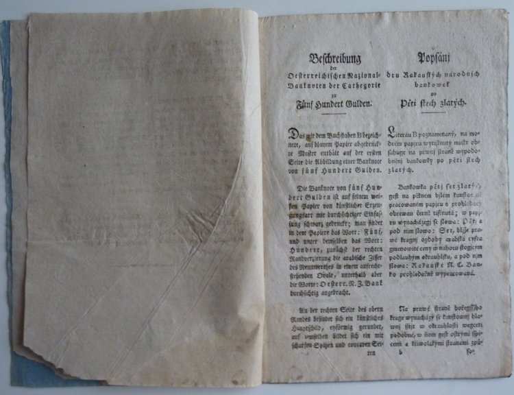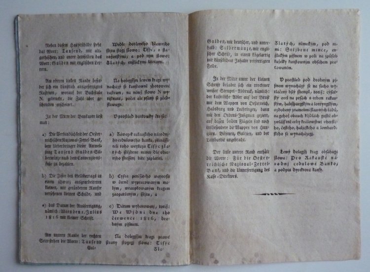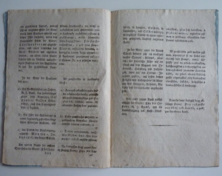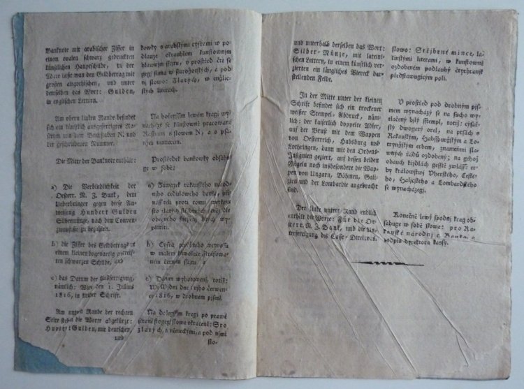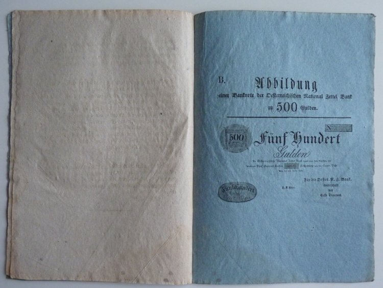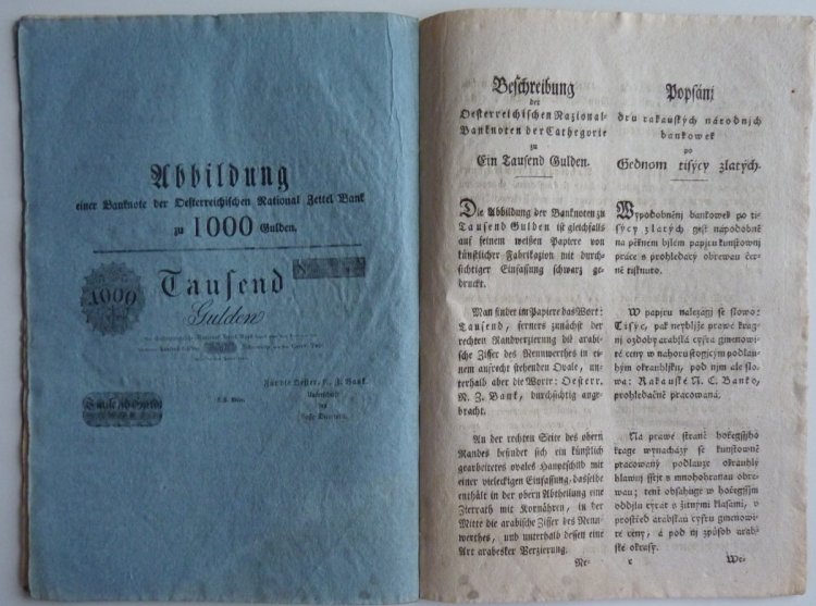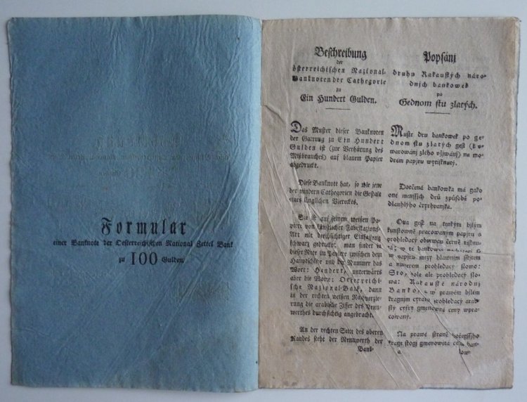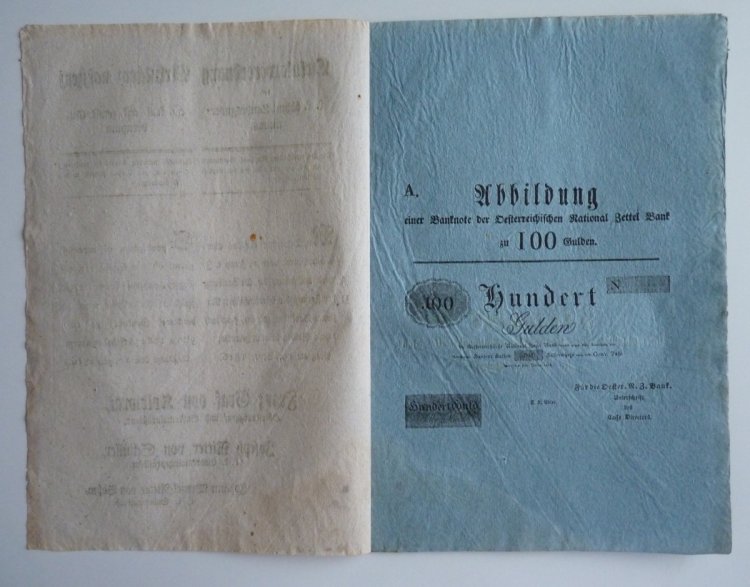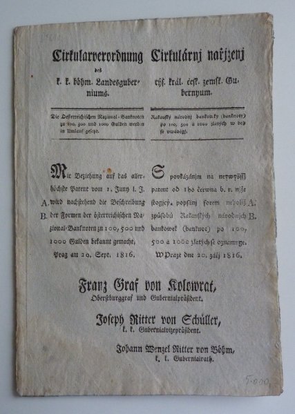 Franz Graf von Kolowrats circular - issue obligation for 100 and 500 gulden money paper