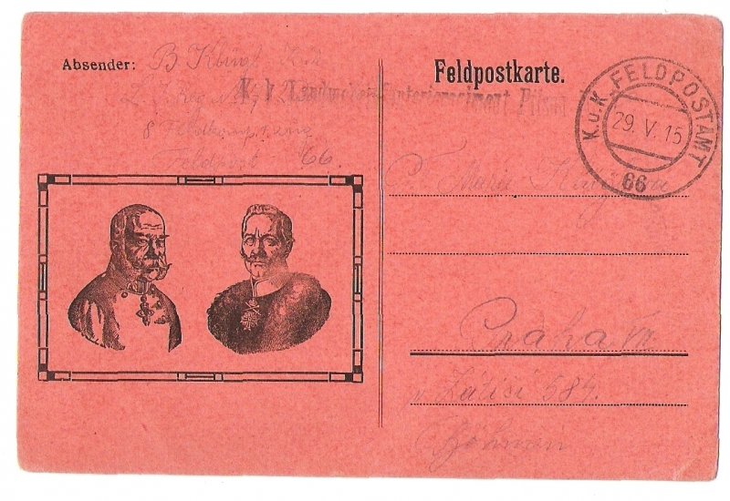 Franz Joseph and Wilhelm , black print on red paper