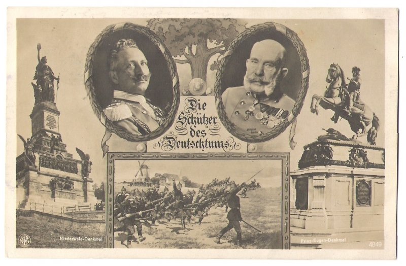 Print variant of attacking soldiers and Franz Joseph in the frame