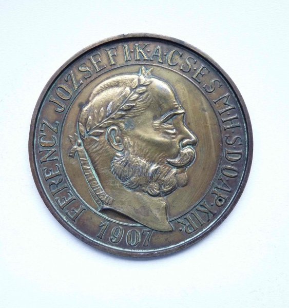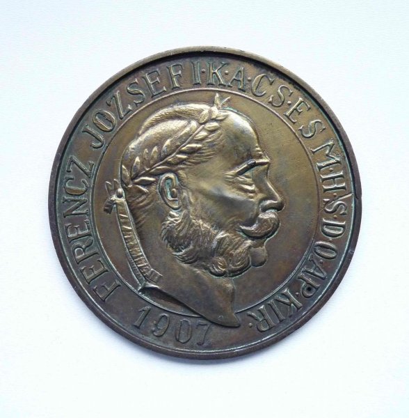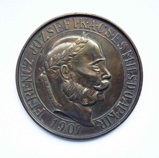 The extraordinary exhibit - the pint tray - 8 cm ( brass - bronze ) , portrait of the emperor - Franz Josef - Coronation of the King of Hungary / Budapest, 1907, one tray with lyrics - Skál ,Wel bekome het , Cherio , Good luck , A votre santé , Prosit , Salute... RRR