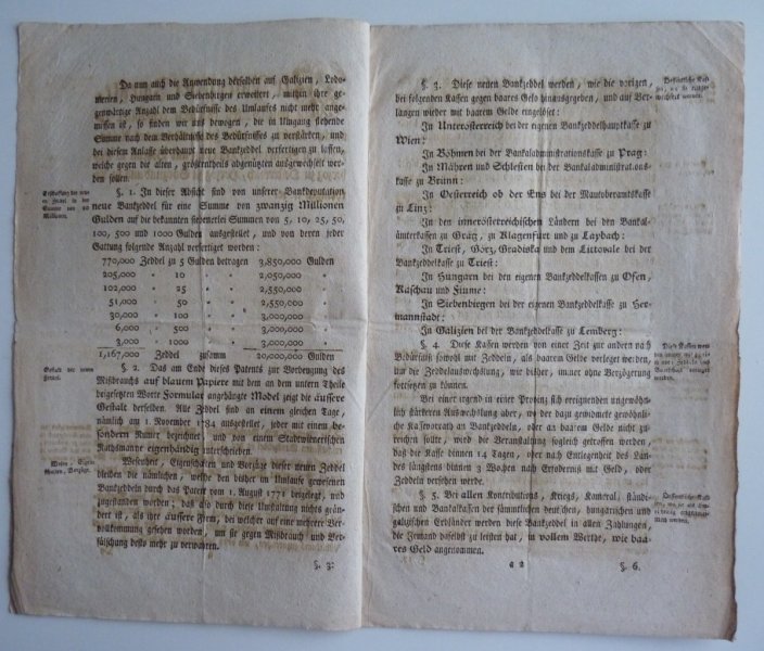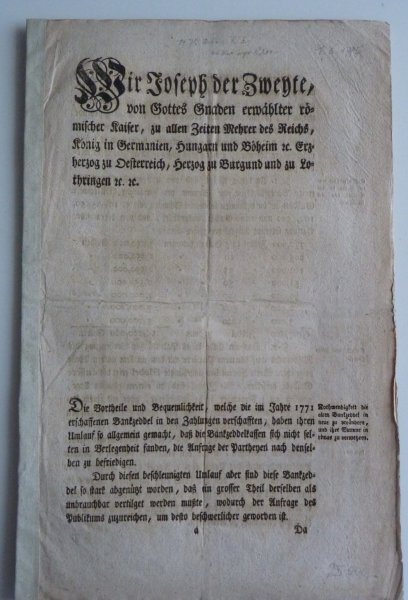 Franz Josephs II., year 1771, issue obligation for 5, 10, 25, 50, 100, 500 and 1000 gulden money paper