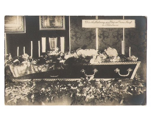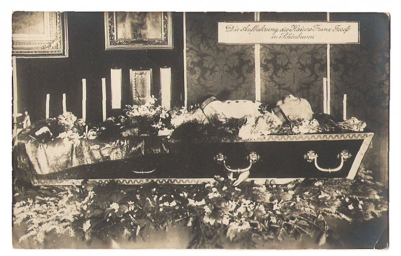 Franz Joseph in coffin in Schönbrunn in his room , the 1st print