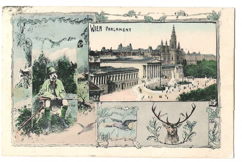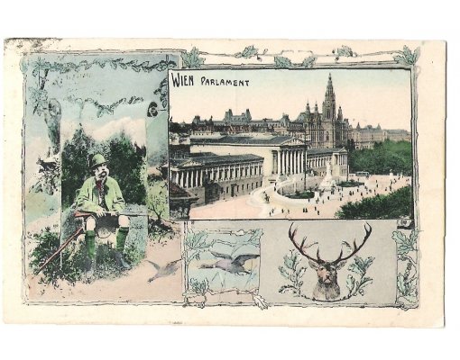 Franz Joseph in huntig suit and view to Schönbrunn