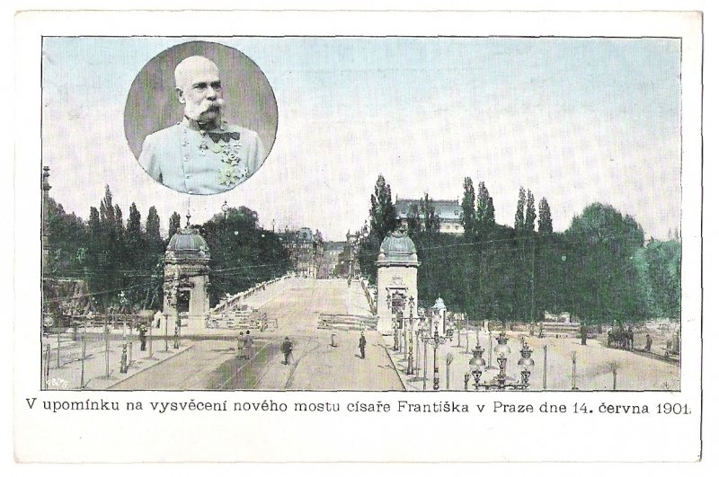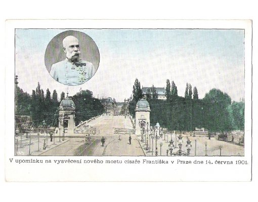 Postcard - reminder to consecration of new bridge of emperor Franz Joseph in Prague, year 1901