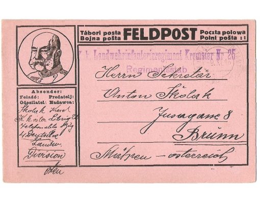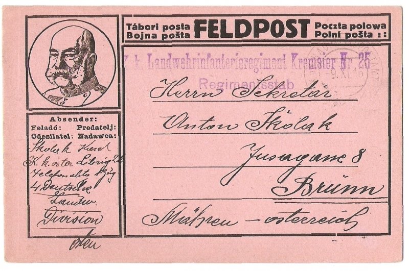 Franz Joseph in round frame , description in four languages