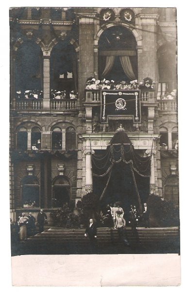 Franz Joseph is leaving festivly decorated hotel Pupp - Karlovy Vary