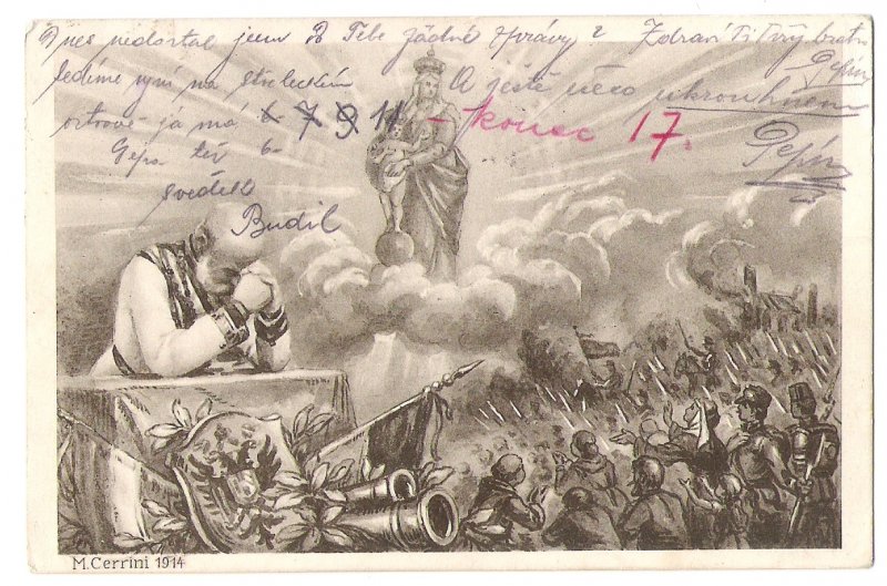 Franz Joseph is praying to Good , he wishes a victory of his soldiers in fights