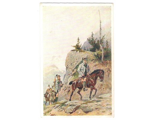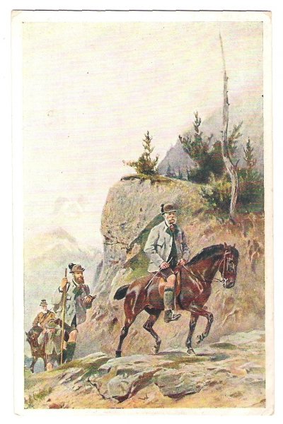 Franz Joseph is riding a horse with is escort on hunt