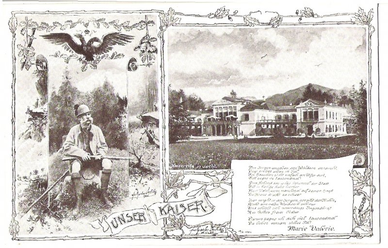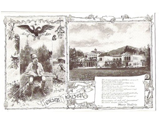 Franz Joseph is sitting on the stock , imperial villa in Bad Ischlu , print variant
