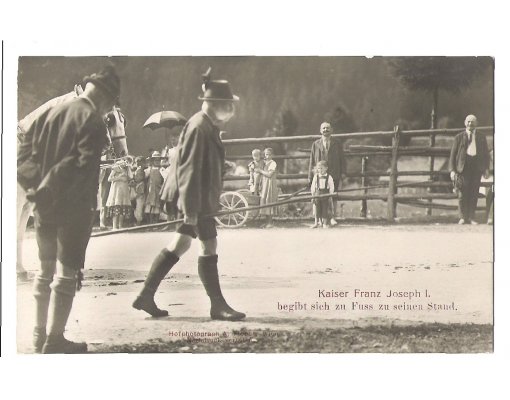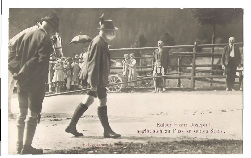 Franz Joseph is walking to hunting place , people pay a tribute to him