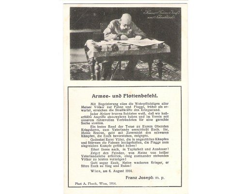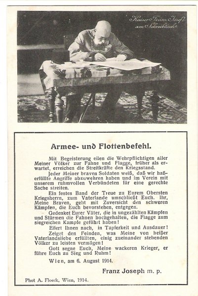 Franz Joseph writing message for his army