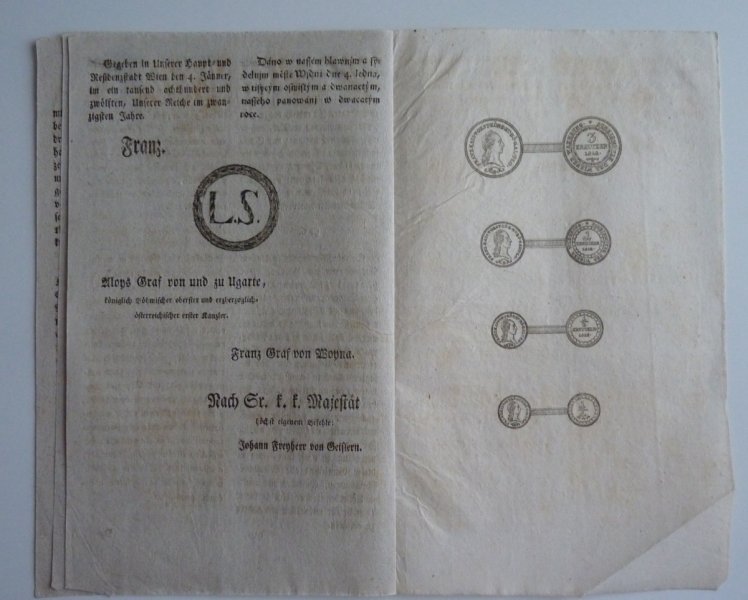 Franz Josephs circular - edition coins 1/4, 1/2 and 1 kreutzer