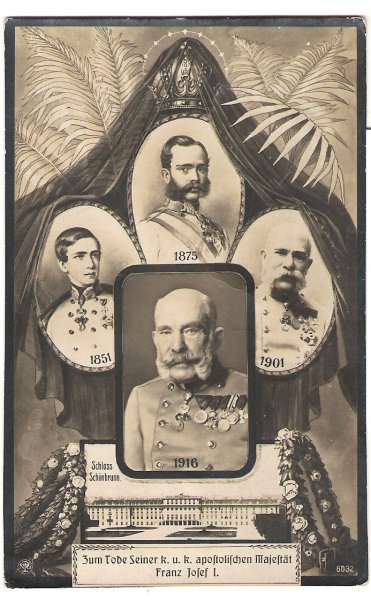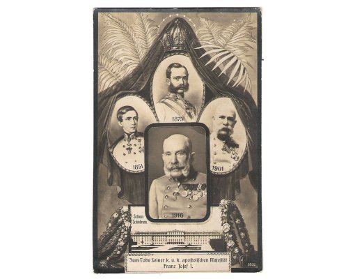 Funeral of emperor - funeral postcards with portraits of emperor