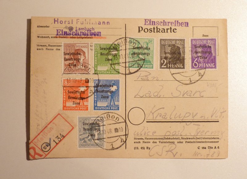 German correspondence card with overprint emissions - Soviet zone