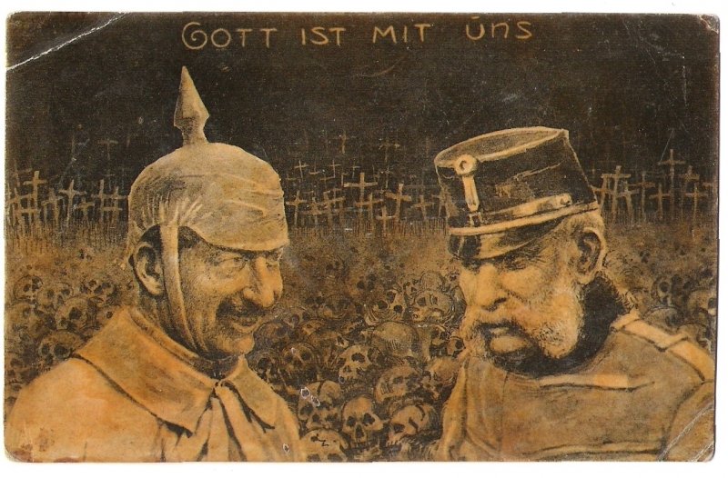 God be with us - people in misery are in background